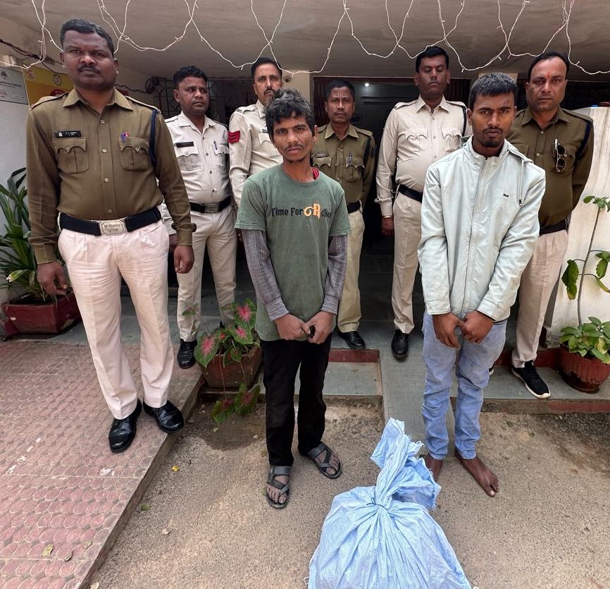पप्पू जायसवाल/ सुरजपुर नशे का कारोबार कर युवा पीढ़ी को नशे की लत लगाने और नशे के गोरख धंधे में संलिप्त लोगों के खिलाफ सख्त से सख्त कार्यवाही कर उन्हें जेल की सलाखों के पीछे भेजने के कड़े निर्देश वरिष्ठ पुलिस अधीक्षक सूरजपुर श्री प्रशांत कुमार ठाकुर ने जिले के पुलिस अधिकारियों को दिए है। अधिकारियों को मिले कड़े निर्देश पर थाना-चौकी की पुलिस लगातार ऐसे लोगों की सूचनाए एकत्रित कर कार्यवाही करने में लगी हुई है। दिनांक 18/11/2024 के रात्रि में थाना रामानुजनगर पुलिस को मुखबीर से सूचना मिला कि सूरजपुर की ओर से एक मोटर सायकल में 3 व्यक्ति नशीली दवाई लेकर बिक्री करने प्रेमनगर की ओर जा रहे है। सूचना पर पुलिस ने ग्राम नारायणपुर में घेराबंदी लगाया इसी दौरान मोटर सायकल में 3 व्यक्ति आते दिखे जिन्हें रोकवाने का इशारा करने पर 1 व्यक्ति मोटर सायकल से कूदकर अंधेरे का फायदा उठाकर भाग निकला। पुलिस टीम ने मोटर सायकल सहित अजय साहू उर्फ जयप्रकाश उम्र 22 वर्ष निवासी ग्राम भुवनेश्वरपुर, थाना रामानुजनगर एवं रहमान ताज पिता समशुद्दीन उम्र 28 वर्ष निवासी ग्राम देवनगर, थाना सूरजपुर को पकड़ा जिसके कब्जे से 318 नग नशीली इंजेक्शन, 22 नग कफ सिरप व 550 नग टेबलेट पाया, जिसकी बाजारू कीमत करीब 1 लाख 85 हजार रूपये है। मामले में नशीली दवाई व मोटर सायकल जप्त कर धारा 21(सी) एनडीपीएस एक्ट के तहत कार्यवाही करते हुए दोनों आरोपियों को गिरफ्तार किया है। वहीं मामले में फरार 1 आरोपी की पतासाजी सरगर्मी से की जा रही है। इस कार्यवाही में थाना प्रभारी रामानुजनगर राजेन्द्र साहू, एएसआई मनोज पोर्ते, प्रधान आरक्षक सुशील तिवारी, हंसराम कनेडिया, आरक्षक दीपक यादव, महेंद्र सिंह, रूपदेव सिंह, सैनिक पंकज पटेल, रजनीश पटेल व देवचंद पाण्डेय सक्रिय रहे। Post Views: 184 Please Share With Your Friends Also Post navigation ब्लॉक रामानुजनगर के धान उपार्जन केंद्रों का कलेक्टर ने किया निरीक्षण ‘‘हमारा शौचालय हमारा सम्मान‘‘ अभियान का हुआ शुभारंभ