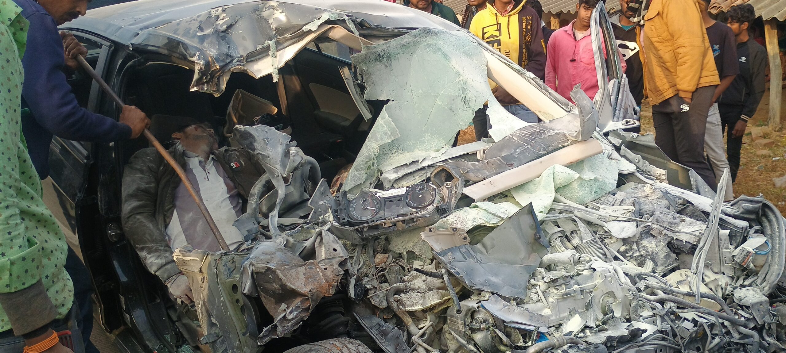 रायपुर से अंबिकापुर जा रही कार ट्रक से टकराई, रेस्क्यू कार्य जारी ग्राम गुमगा के पास अदानी गेस्ट हाउस के समीप नेशनल हाईवे-130 पर एक दर्दनाक सड़क हादसे में चार लोगों की मौके पर ही मौत हो गई। हादसा इतना भीषण था कि कार सवार ट्रक में जा घुसे। कार में कुल पांच लोग सवार थे, जिनमें से एक व्यक्ति गंभीर रूप से घायल हुआ है। उसे तत्काल सामुदायिक स्वास्थ्य केंद्र (सीएचसी) उदयपुर में भर्ती कराया गया। थाना प्रभारी कुमारी चंद्राकर अपनी टीम के साथ मौके पर मौजूद हैं। कार इतनी क्षतिग्रस्त हो चुकी है कि शवों को निकालने के लिए कटर का सहारा लेना पड़ रहा है। हादसे के बाद मौके पर लोगों की भारी भीड़ जमा हो गई है। रेस्क्यू कार्य अभी भी जारी है। कार का मॉडल स्कोडा बताया जा रहा है। फिलहाल दो लोग गाड़ी में फंसे हुए हैं। आगे की जानकारी मिलने तक स्थिति गंभीर बनी हुई है। Post Views: 1,641 Please Share With Your Friends Also Post navigation मोहरसोप में सौतेली मां की हत्या, पारिवारिक विवाद में उग्र होकर बेटे ने फावड़े से किया हमला पेड़ पर चढ़ा भालू, रेस्क्यू ऑपरेशन जारी, महुआ पेड़ पर 30 फीट ऊंचाई पर बैठा भालू, वन विभाग और पुलिस टीम प्रयासरत