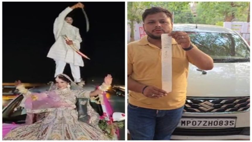ग्वालियर। ‘इश्क दी गली विच नो एंट्री’ फिल्मी गाने पर रील बनाने वाले दूल्हा दुल्हन पर एक्शन देखने मिला है। ग्वालियर ट्रैफिक पुलिस ने गाड़ी मालिक पर 500 रुपये जुर्माना लगाया है। वहीं गाड़ी मालिक ने जुर्माना भरने के बाद भविष्य में रील बनाने के लिए जान जोखिम में न डालने की अपील भी लोगो से की है। सोशल मीडिया पर वायरल हुआ था वीडियो दरअसल ग्वालियर में बीते दिनों एक रील काफी चर्चाओं में रही। तानसेन ROB सड़क पर बनाया गया एक रील सोशल मीडिया पर वायरल हुआ था। रील में कार के बोनट पर दुल्हन बैठ कर नाच रही थी। वहीं दूल्हेराजा कार की छत पर खड़े होकर तलवार बाजी करते हुए नजर आये थे। यह रील जैसे ही ट्रैफिक पुलिस के पास पहुंची तो रील में दिख रही कार के RTO नम्बर के जरिये गाड़ी मालिक की तलाश शुरू की गई। कार मालिक ने भरा जुर्माना ट्रैफिक पुलिस ने ग्वालियर के रहने वाले गाड़ी मालिक नीलेश श्रीवास को जुर्माने की जानकारी दी। जिसके बाद नीलेश ने 500 रुपये का जुर्माना भरा। नीलेश ने यह भी बताया की उसके दोस्त अंशु तोमर की शादी के दौरान अंशु ने रील शूट किया था। आगे से कोई भी इस तरह की जोखिम भरी रील शूट न करे। क्योंकि यह खुद के साथ दूसरे के जीवन को परेशानी में डाल सकती है। वहीं ट्रैफिक DSP नरेश अन्नोटिया का कहना है कि भविष्य में भी यदि कोई इस तरह ट्रैफिक नियमों की अवहेलना करेगा तो उसके ऊपर सख्त कार्रवाई की जाएगी। Post Views: 198 Please Share With Your Friends Also Post navigation भीषण सड़क हादसा: खाई में गिरी तीर्थयात्रियों की बस, 21 की मौत, 35 से अधिक लोग घायल… सोफिया कुरैशी को लेकर आपत्तिजनक टिप्पणी पर मंत्री विजय शाह पर हाईकोर्ट के आदेश पर FIR दर्ज