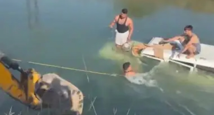 मध्यप्रदेश के ग्वालियर जिले के डबरा में बड़ा हादसा हो गया। एक तेज रफ्तार बोलेरो कार नहर में गिर गई। हादसे के बाद मौके पर पहुंची पुलिस ने कार को नदी से बाहर निकाल लिया है लेकिन सवारी के बारे में कुछ पता नहीं चल पाया है। कार में कितने लोग सवार थे और कहां है इसकी जानकारी नहीं मिल पाई है। फिलहाल कार सवारों के भी नहर में बह जाने की आशंका है। पुलिस द्वारा खोजबीन जारी है। दरअसल भितरवार–करहिया रोड पर स्थित हरसी हाई लेवल नहर में एक बोलेरो कार गिर गई। नहर में पानी के तेज बहाव में देर रात बोलेरो कार गिर गई। हादसे की सूचना पर करहिया थाना पुलिस मौके पर पहुंची। थाना प्रभारी देवेंद्र लोधी खुद पानी के बीच उतरे। जेसीबी (JCB) मशीन की मदद से बोलेरो कार को नहर से बाहर निकाला गया। कार में सवार लोगों की पुलिस को जानकारी नहीं मिल पाई है। कार सवार लोगों को पुलिस खोजने का प्रयास कर रही है। कार का भिंड (पासिंग) जिले का बताया जा रहा है। हादसे की सूचना ग्रामीणों ने पुलिस को दी थी। मामला करहिया थाना क्षेत्र का है। Post Views: 230 Please Share With Your Friends Also Post navigation जहरीली शराब पीने से दो लोगों की मौत, इलाके में मचा हड़कंप.. दिनदहाड़े उठाईगिरी : पीडीएस ट्रांसपोर्टर से 1.5 लाख की लूट, मौके पर पहुंची पुलिस…