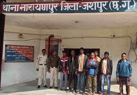 ग्राम बेहराखार में गौवंश वध और मांस सेवन करते पाए गए आरोपी, पुलिस ने मौके से धारदार हथियार और गौ-मांस किया जब्त नारायणपुर/जशपुर: – नारायणपुर पुलिस ने शनिवार शाम एक विशेष ऑपरेशन में ग्राम बेहराखार से 14 लोगों को गौवंश वध और मांस सेवन करते हुए गिरफ्तार किया। पुलिस को सूचना मिली थी कि अश्विन कुजूर के घर में गौवंश को क्रूरतापूर्वक काटकर मांस बनाया जा रहा है। थाना प्रभारी उप निरीक्षक सतीश सोनवानी ने तुरंत टीम के साथ छापेमारी की। मौके पर रोहित कुजूर, संजय कुजूर, अश्विन कुजूर, अनुरंजन कुजूर सहित 14 आरोपी पाए गए। टीम ने देखा कि गौवंश को धारदार हथियार से काटा गया था और अवशेषों को बोरे में रखा गया था। 5-5 किलो मांस दो कड़ाहियों में पकाया जा रहा था, और कुछ आरोपी उसका सेवन कर रहे थे। पुलिस ने बरामद किया: 10 किलो गौ-मांस एक टांगी दो बैठी प्लास्टिक बोरे में गौवंश के अवशेष आरोपियों के खिलाफ ठोस सबूत मिलने पर उन्हें गिरफ्तार कर न्यायिक अभिरक्षा में भेजा गया। इस कार्यवाही में उप निरीक्षक सतीश सोनवानी, उप निरीक्षक शिव कुमार यादव, स.उ.नि. भिनसेंट टोप्पो, प्र.आर. 444 अजय कुजूर, प्र.आर. 174 रंजीत खलखो, प्र.आर. 498 पूरन चंद पटेल, आर. 466 बल्थाजर तिग्गा, आर. 602 प्रदीप भगत, आर. 102 जीवन मसीह, न.सै. विरेन्द्र भगत, ओमप्रकाश, अमित तिर्की का विशेष योगदान रहा। पुलिस ने मामले की गहन जांच शुरू कर दी है और गांव में सुरक्षा कड़ी कर दी गई है। Post Views: 521 Please Share With Your Friends Also Post navigation कवर्धा के जंगलों में बाघिन की दस्तक वन्यजीवों की हलचल तेज, जंगली जानवरों को बना रही निशाना चांदनी बिहारपुर में तेंदुआ का आतंक: बछड़े पर किया हमला, ग्रामीण दहशत में