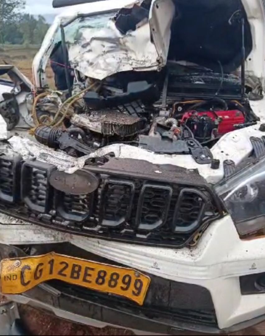 सरगुजा : सीतापुर / नमन सोनी MCB से जशपुर के कुनकुरी जा रही पुलिस टीम का हादसा, घायलों को अंबिकापुर मेडिकल कॉलेज किया गया रेफर अंबिकापुर। MCB जिले से VIP मूवमेंट की तैयारी में HHMD डिवाइस लेकर जशपुर के कुनकुरी जा रही पुलिस की स्कॉर्पियो खड़ी ट्रक से टकरा गई। इस हादसे में स्कॉर्पियो में सवार चालक और DFMD के एक पुलिस आरक्षक गंभीर रूप से घायल हो गए। पुलिस ने कड़ी मशक्कत के बाद दोनों घायलों को दुर्घटनाग्रस्त वाहन से बाहर निकाला। प्राथमिक उपचार के लिए दोनों को सीएचसी ले जाया गया, जहां से उन्हें अंबिकापुर मेडिकल कॉलेज अस्पताल रेफर कर दिया गया। यह हादसा सीतापुर थानाक्षेत्र के ग्राम मंगारी के मुख्य मार्ग NH43 पर तड़के सुबह हुआ। Post Views: 222 Please Share With Your Friends Also Post navigation “किसान प्रतिभा रत्न सम्मान समारोह” का रायपुर में हुआ आयोजन अवैध रेत परिवहन पर सरगुजा पुलिस एवं राजस्व विभाग की संयुक्त कार्यवाही, 04 टीपर अवैध रेत किया गया जप्त