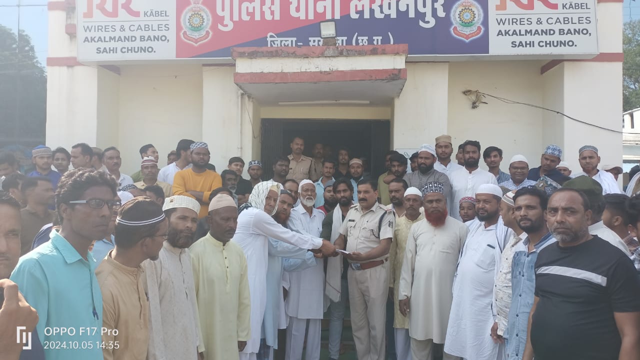 लखनपुर / दिनेश बारी, 05/10/2024 पैगंबर मोहम्मद साहब के खिलाफ गलत टिप्पणी को लेकर लखनपुर अंजुमन गौसिया कमेटी के नेतृत्व में मुस्लिम समुदाय के लोग बड़ी संख्या में 5 अक्टूबर, शनिवार को दोपहर 2 बजे लखनपुर जमा मस्जिद से पदयात्रा करते हुए लखनपुर थाने पहुंचे। उन्होंने महंत यति नरसिंहानंद सरस्वती के खिलाफ रिपोर्ट दर्ज कराने के लिए थाना प्रभारी को ज्ञापन सौंपा। ज्ञापन में उल्लेख किया गया कि 29 सितंबर 2024 को गाजियाबाद के लोहियानगर स्थित हिंदी भवन में आयोजित कार्यक्रम के दौरान यति नरसिंहानंद सरस्वती ने पैगंबर मोहम्मद साहब के खिलाफ आपत्तिजनक टिप्पणी करते हुए रावण की जगह उन्हें जलाने की विवादास्पद बात कही। इसके पहले भी यति नरसिंहानंद द्वारा मुसलमानों के खिलाफ कई बार भड़काऊ बयान दिए गए हैं। उनके इन बयानों को जानबूझकर धार्मिक भावनाओं को ठेस पहुंचाने और देश में अराजकता फैलाने का प्रयास माना जा रहा है। अंजुमन गौसिया कमेटी के नेतृत्व में आक्रोशित मुस्लिम समुदाय ने लखनपुर थाने में पहुंचकर यति नरसिंहानंद के खिलाफ रिपोर्ट दर्ज कराने और उनके खिलाफ सख्त कार्रवाई की मांग की है। Post Views: 405 Please Share With Your Friends Also Post navigation अंबिकापुर विधायक राजेश अग्रवाल ने लखनपुर जनपद में संपूर्णता अभियान समापन कार्यक्रम में की शिरकत ग्राम पंचायत खैरा के ग्रामीणों ने शुरू कीअनिश्चितकालीन भूख हड़ताल