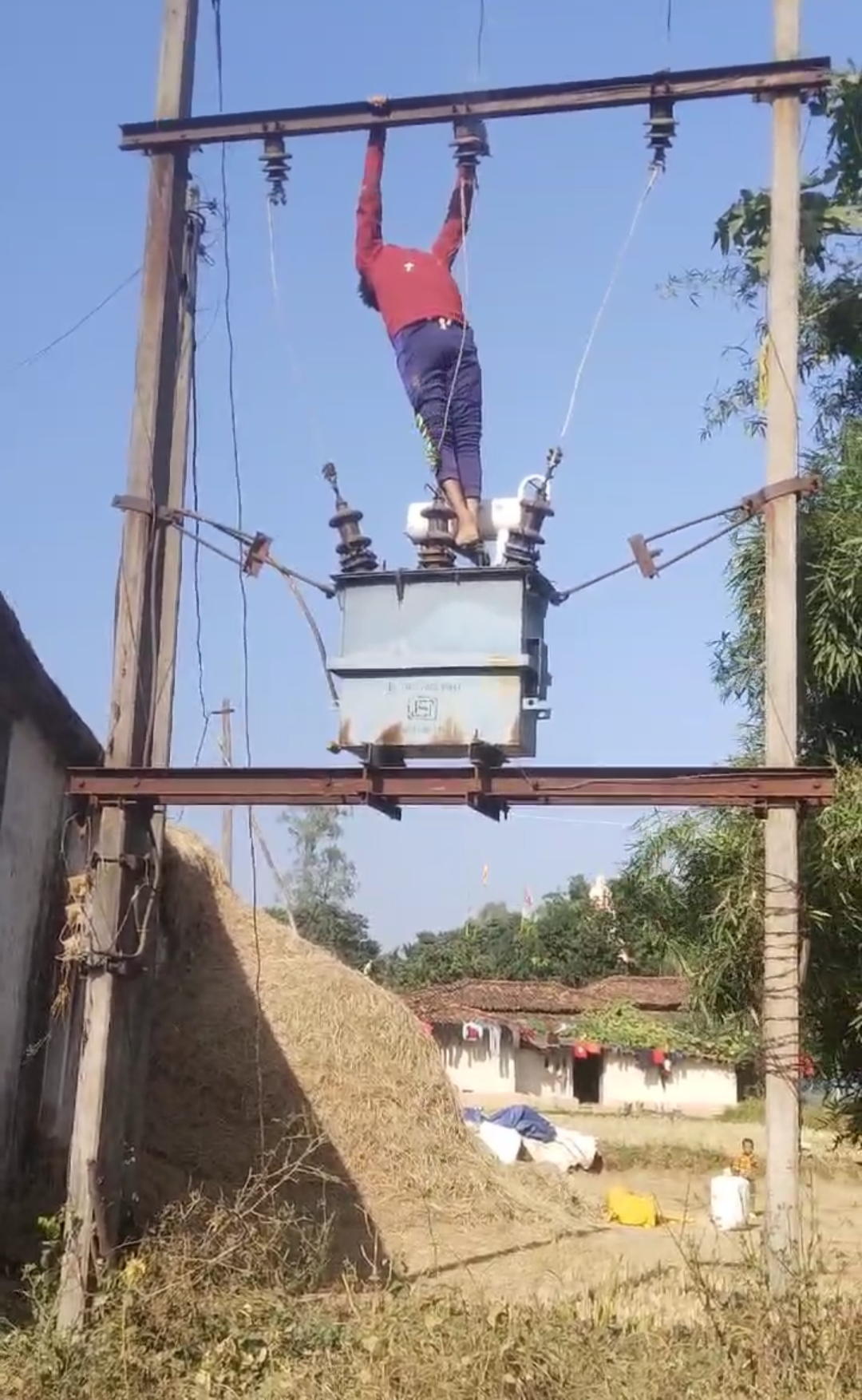 मानसिक विक्षिप्त युवक हाई वोल्टेज ट्रांसफॉर्मर पर चढ़ा, करंट से घायल, लेकिन बच गई जान