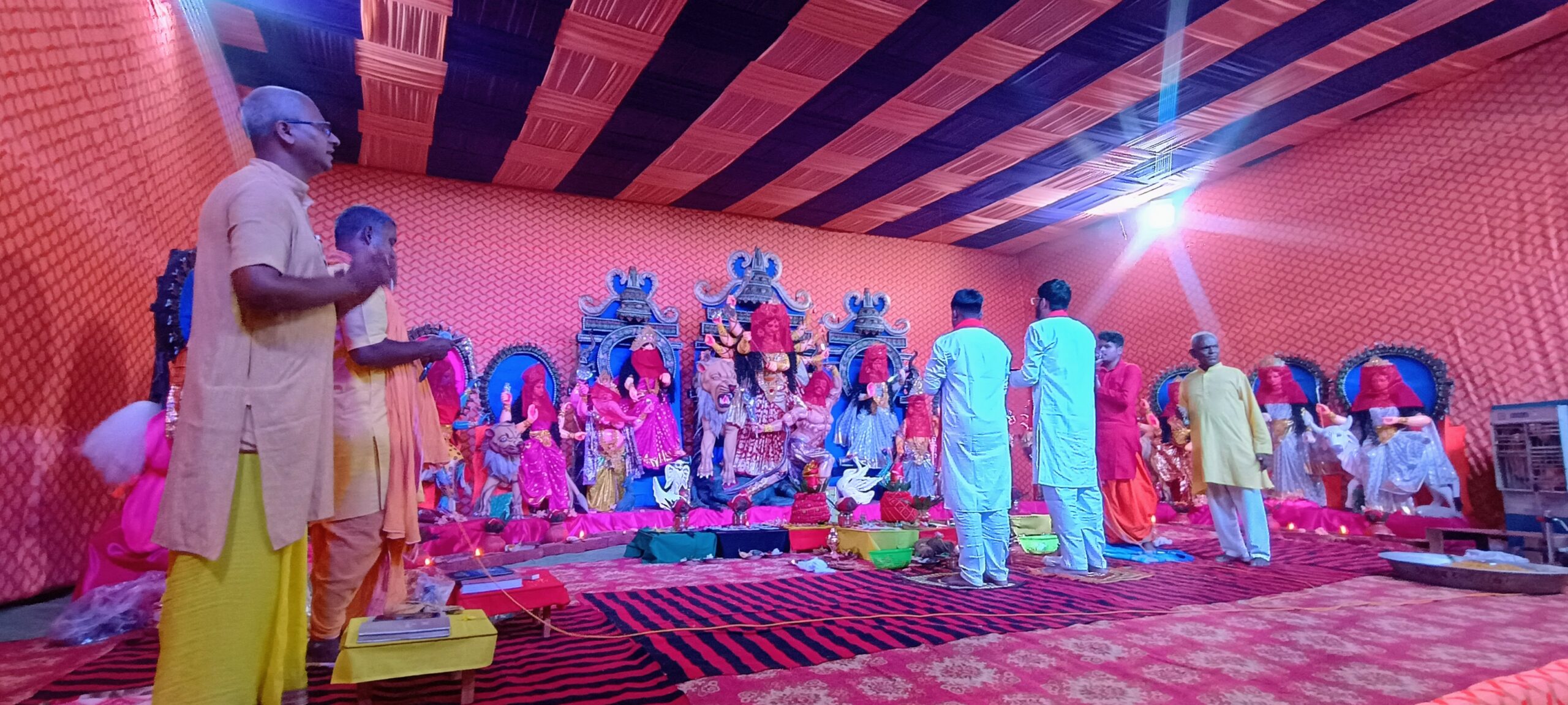 AMBIKAPUR/KKR उदयपुर – इस नवरात्रि के अवसर पर ग्राम उदयपुर के शिव मंदिर परिसर में भव्य दुर्गा पूजा का आयोजन किया जा रहा है, जहां 65 फीट ऊंचे पंडाल में मां दुर्गा की भव्य प्रतिमा के साथ 9 देवियों की प्रतिमाएं भी विराजित हैं। मंदिर परिसर में श्रद्धालुओं का तांता लगा हुआ है, और प्रतिदिन सुबह-शाम विधिवत पूजा-पाठ और आरती की जा रही है, जिसमें सैकड़ों ग्रामीण श्रद्धापूर्वक शामिल हो रहे हैं।1 भव्य पंडाल और 09 देवियों की विशेष आराधनाइस बार पहली बार शिव मंदिर परिसर में 9 देवियों की प्रतिमा स्थापित की गई है, जिसमें मां दुर्गा की प्रमुख मूर्ति विशेष आकर्षण का केंद्र बनी हुई है। श्रद्धालु पूरी श्रद्धा के साथ मां दुर्गा और अन्य देवियों की पूजा-अर्चना कर रहे हैं। पंडाल को भव्य तरीके से सजाया गया है, जिससे ग्रामीण और दूर-दूर से आए श्रद्धालु मंत्रमुग्ध हो रहे हैं। सांस्कृतिक कार्यक्रमों में गरबा, डांडिया और प्रतियोगिताएंमंदिर परिसर में प्रतिदिन गरबा और डांडिया की धूम मची हुई है। इसके अलावा विभिन्न सांस्कृतिक कार्यक्रमों का आयोजन भी किया जा रहा है, जिनमें बहुरूपिया प्रतियोगिता, निशाना लगाओ, छोटे बच्चों का डांस प्रतियोगिता, और फैंसी ड्रेस प्रतियोगिता जैसी दिलचस्प प्रतियोगिताएं शामिल हैं। इन कार्यक्रमों में ग्रामवासियों और बच्चों की उत्साही भागीदारी देखने को मिल रही है। 09 अक्टूबर को प्रियंका पाण्डेय प्रस्तुत करेंगी देवी जागरण गीत सार्वजनिक दुर्गा पूजा समिति उदयपुर द्वारा जगराता का आयोजन किया गया है जिसमें बनारस उत्तर प्रदेश की मशहूर भजन गायिका lप्रियंका पाण्डेय एवं साथी कलाकारों के द्वारा माता रानी का जागरण 09 अक्टूबर को प्रस्तुत किया जाएगा। लक्की ड्रॉ में इलेक्ट्रिक स्कूटी प्रथम पुरस्कारइस आयोजन को और भी रोमांचक बनाने के लिए लक्की ड्रा का आयोजन किया गया है, जिसमें प्रथम पुरस्कार के रूप में इलेक्ट्रिक स्कूटी रखी गई है। इसके अलावा, मोबाइल फोन और एलईडी टीवी भी पुरस्कार के रूप में दिए जा रहे हैं, जिससे ग्रामीणों में उत्साह और बढ़ गया है। * आयोजन में समिति और पूजा पाठ में नारी शक्तियों का विशेष योगदानइस भव्य आयोजन को सफल बनाने में सार्वजनिक दुर्गा पूजा समिति के पदाधिकारी, सदस्यगण, युवा मित्र मंडली का और पूजा पाठ में नारी शक्तियों का महत्वपूर्ण योगदान है। इनकी कड़ी मेहनत और समर्पण से यह आयोजन पूरे ग्राम में चर्चा का विषय बना हुआ है। *रावण दहन की जोरदार तैयारीनवरात्रि के समापन के बाद, दशहरे के दिन रावण दहन का आयोजन किया जाएगा। इस साल 40 फीट ऊंचे रावण का निर्माण बाहर से आए कलाकारों द्वारा किया जा रहा है। रावण के निर्माण में बांस, कार्टून, पटाखे और रस्सी का उपयोग किया गया है, और इसे लेकर ग्रामीणों मे