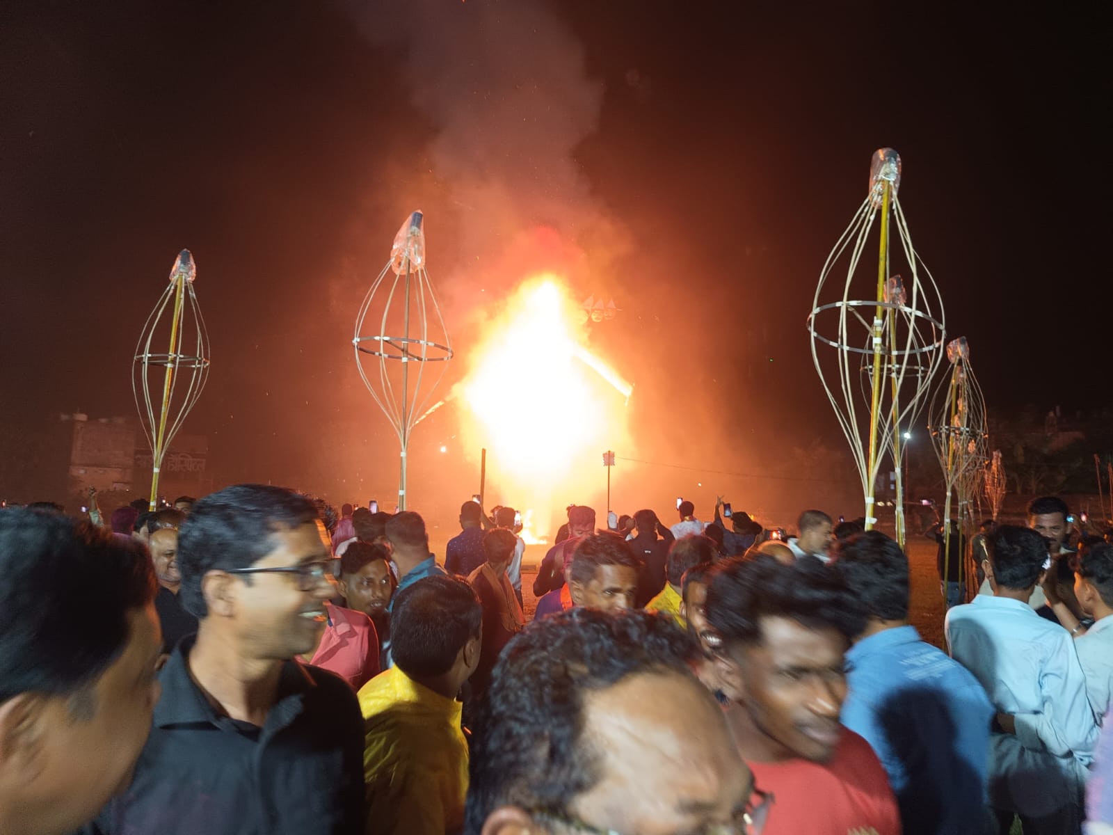 लखनपुर, दिनेश बारी 13 अक्टूबर 2024: रियासत कालीन परंपरा का निर्वहन करते हुए लखनपुर क्षेत्र में दशहरा का त्योहार एक दिन बाद मनाया गया। इस अवसर पर लगभग 80 फीट ऊंचे रावण के पुतले का दहन मुख्य अतिथि लुण्ड्रा विधायक प्रबोध मिंज और अंबिकापुर विधायक राजेश अग्रवाल द्वारा किया गया। लखनपुर में दशहरा एक दिन बाद मनाने की परंपरा का मुख्य कारण यह है कि दशहरे के दिन सरगुजा महाराज अम्बिकापुर से लखनपुर पैलेस पहुंचकर अपने प्रजाजनों से मुलाकात करते थे और उनके हालचाल पूछते थे। इसके बाद ही रावण दहन कर दशहरा मनाया जाता है। इस वर्ष भी साक्षरता मिनी स्टेडियम में रावण दहन समिति द्वारा लगभग 80 फीट का रावण का पुतला तैयार किया गया था। करीब एक घंटे की रंग-बिरंगी आतिशबाजी ने सभी का मन मोह लिया। इस मौके पर लुण्ड्रा विधायक प्रबोध मिंज और अंबिकापुर विधायक राजेश अग्रवाल ने कार्यक्रम को संबोधित करते हुए सभी को विजयदशमी की शुभकामनाएं दीं। उन्होंने कहा कि दशहरा असत्य पर सत्य की विजय का प्रतीक है और हमें बुरे कर्मों को छोड़कर सही मार्ग पर चलने का संकल्प लेना चाहिए। विशेष अतिथि और गणमान्य लोग:कृपा शंकर गुप्ता, दिनेश साहू, सुभाष अग्रवाल, हरविंद अग्रवाल, राजेंद्र जायसवाल, रामनारायण दुबे, नरेंद्र पांडे, सुरेश साहू, दिनेश बारी, बृजेंद्र पांडे, राहुल अग्रवाल, नीरज अग्रवाल, राकेश अग्रवाल, राधेश्याम अग्रवाल, सहदूल खान, तरबेज आलम, सौरभ अग्रवाल दुर्गा मंडप बाज़ारपारा समिति:कन्हैया साहू, सुजीत गुप्ता, ओमप्रकाश कुर्रे, दिनेश सिंह, राजू गुप्ता नवचेतना दुर्गा पूजा समिति:सुनील अग्रवाल, जितेंद्र गुप्ता, राकेश अग्रवाल, नीरज अग्रवाल, पंकज जयसवाल, लवी अग्रवाल, सचिन अग्रवाल दशहरे के अवसर पर पूरे नगर में दुर्गा प्रतिमा की शोभायात्रा नगाड़ा और सैला नृत्य के साथ निकाली गई, जिसका विसर्जन स्थानीय देव तालाब में किया गया। बड़ी संख्या में नगरवासियों और क्षेत्रवासियों ने इस आयोजन में भाग लिया। इसके बाद साक्षरता मिनी स्टेडियम में रावण का दहन किया गया, जहां सभी ने बुराई पर अच्छाई की जीत का जश्न धूमधाम से मनाया। Post Views: 335 Please Share With Your Friends Also Post navigation भव्य आतिशबाजी के साथ 50 फीट के रावण का हुआ दहन, दुर्गा पूजा हुई संपन्न सड़क दुर्घटना में पिता-बेटी सहित तीन की मौत, मां गंभीर रूप से घायल