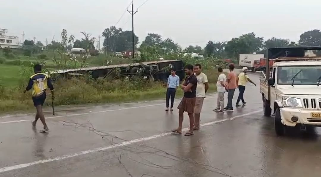 चुलहट नाला लखनपुर के पास हुआ हादसा लखनपुर, / दिनेश बारी /15 सितंबर 2024: अंबिकापुर-बिलासपुर नेशनल हाईवे 130 पर स्थित लखनपुर थाना क्षेत्र के चूल्हट नाला मोड़ के पास एक तेज रफ्तार ट्रक अनियंत्रित होकर 33हजार केवी विद्युत पोल को ठोकर मारते हुए खेत में पलट गया। इस हादसे में चालक बाल-बाल बच गया। ट्रक क्रमांक एन एल 01ए ए 4916 झारखंड के रांची से महाराष्ट्र के पुणे जा रहा था। जब ट्रक चूल्हट नाला मोड़ के पास पहुंचा, तो तेज रफ्तार ट्रक के चालक को नींद की झप्पी आने से ट्रक अनियंत्रित हो गया और साइन बोर्ड को तोड़ते हुए विपरीत दिशा में 33हजार केवी विद्युत पोल को ठोकर मारते हुए खेत में जा पलटा। ट्रक का शीशा तोड़कर चालक को बाहर निकाला गया। 33हजार केवी विद्युत प्रवाहित तार के नीचे लगे जाली के सड़क में गिरने से सड़क के दोनों ओर वाहनों की लंबी कतार लग गई और लगभग 1 घंटे तक आवागमन बाधित रहा। सूचना मिलने पर डायल 112 की टीम और विद्युत विभाग की टीम मौके पर पहुंची और सड़क पर बिखरी 33हजार केवी विद्युत प्रवाहित जाली को काटकर हटाया गया, जिससे आवागमन बहाल किया गया। गनीमत रही कि एक बड़ा हादसा टल गया। Post Views: 340 Please Share With Your Friends Also Post navigation सेजेस केशवपुर में हिंदी दिवस उत्साहपूर्वक मनाया गया रायपुर : महाराजा प्रवीरचंद्र भंजदेव एवं गुण्डाघूर सम्मान वर्ष 2024-25 के लिए 25 सितम्बर तक अनुशंसाए आमंत्रित