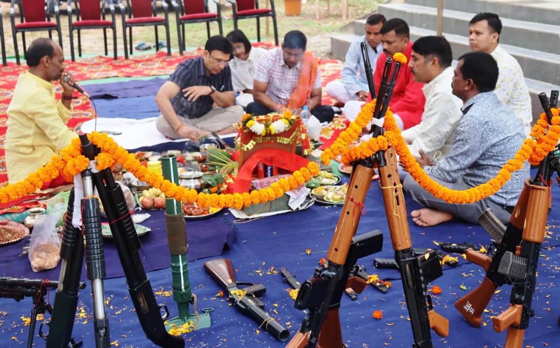 एसपी शशि मोहन सिंह ने अधि./कर्मचारियों सहित पूरे जिले के निवासियों को दशहरा पर्व की शुभकामनाएं दी जशपुरनगर- विजयादशमी पर्व पर पुलिस लाईन जशपुर, थाना-चौकी में शस्त्र पूजन की गई। एसपी जशपुर श्री शशि मोहन सिंह ने शनिवार, 12 अक्टूबर 2024 को विजय दशमी पर्व पर अपनी परम्परा के अनुसार पुलिस लाईन जशपुर में विधि-विधान से शस्त्र पूजन करते हुये माॅं दुर्गा की आरती उपरांत पूजा के उपरान्त तलवार से प्रतीकात्मक कद्दू के बकरे की बलि दी। एसपी श्री सिंह ने सभी अधिकारी-कर्मचारियों एवं जिलेवासियों को दशहरा पर्व की शुभकामनाएं दी। उन्होंने सुख, समृद्धि और खुशहाली की कामना करते हुए पुलिस बल को कर्तव्यपरायणता के साथ अपने कार्यों का निर्वहन करने के लिए प्रेरित किया।शस्त्र पूजा पश्चात् रायफल से हर्ष फायर किया गया। आज के दिन जशपुर जिले के सभी थाना-चौकी प्रभारियों के द्वारा भी हथियारों पर पुष्प और कंकु लगाकर मंत्रोच्चार के साथ विधि-विधान से पूजा सम्पन्न कराया गया। इस दौरान अतिरिक्त पुलिस अधीक्षक श्री अनिल कुमार सोनी, एसडीओपी जशपुर श्री चंद्रशेखर परमा, उप पुलिस अधीक्षक (अ.जा.क.) श्री भावेश समरथ, रक्षित निरीक्षक अमरजीत खूंटे, निरीक्षक रविषंकर तिवारी सहित पुलिस लाईन के अधिकारी-कर्मचारीगण उपस्थित रहे। Post Views: 212 Please Share With Your Friends Also Post navigation बलरामपुर में रेत माफिया का कब्जा: महान नदी बेजान, छह वाहन जब्त स्कूटी की ट्रक से टक्कर में युवक की मौत ने दशहरा पर्व की खुशियों को मातम में बदला
