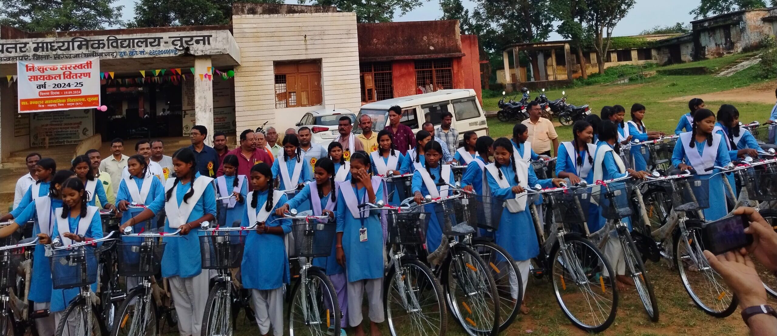 सरस्वती सायकिल वितरण योजना के तहत छात्राओं को बांटे गए निशुल्क सायकिल