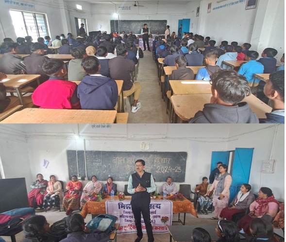 पप्पू जायसवाल / सूरजपुर सूरजपुर/01 जनवरी 2025/ कलेक्टर श्री एस. जयवर्धन के निर्देश पर जिला कार्यक्रम अधिकारी श्री रमेश साहू के मार्गदर्शन में जिला बाल संरक्षण इकाई विभिन्न हायर सेकेण्डरी एवं हाई स्कूलों में जागरूकता कार्यक्रम का आयोजन किया जा रहा है। स्कूलों के खुलने के साथ ही स्कूलों में बच्चों को उनके अधिकारों, बच्चों से संबंधित कानूनों एवं उनके सुरक्षा के उपायों की जानकारी दी जा रही है। विकासखण्ड सूरजपुर हायर सेकेण्डरी स्कूल जयनगर में जागरूकता कार्यक्रम किया गया। जिला बाल संरक्षण अधिकारी मनोज जायसवाल ने बच्चों को बाल विवाह अब केवल कुरीति ही नहीं बल्कि अपराध है। बाल विवाह करने में एक लाख जुर्माना एवं दो साल के सजा का प्रावधान है। उन्होने बताया कि बाल विवाह बालिका का विकास रुक जाता साथ ही उनके शिक्षा में अवरोध आ जाता है। कम उम्र में बालिका अपनी जिम्मेदारी का निर्वहन नहीं कर पाती है। इसलिए इस क्षेत्र को बाल विवाह मुक्त कराना है। इस अभियान के लिए सभी बच्चों एवं शिक्षकों, सरपंच, सचिवों एवं अन्य विभाग के सभी को सक्रिय होने की आवश्यकता है। सभी बच्चों यौन अपराध से बचने की उपायों की भी जानकारी दी गई। साथ ही पॉक्सो एक्ट के संबंध में सभी को जागरूक किया, सभी बच्चों को गुड टच एवं बेड टच की जानकारी दी। सभी बच्चों को चुटपी तोड़ने हेतु जागरूकता किया गया। यौन शोषण से बचने के लिए नो-नो टेल एफ आई आर जैसे सुक के बारे में विस्तृत जानकारी दी गई। बच्चों को किशोर न्याय अधिनियम के अंतर्गत बाल भिक्षावृत्ति से मुक्त सूरजपुर बनाने में सहयोग का आह्वान किया बच्चों से भिक्षा वृत्ति कराना एक जघन्य अपराध है बच्चों को भिक्षावृत्ति करते देखने पर इसकी सूचना 1098 पर देने का आह्वान किया गया। बच्चों को नशे से बचाने ले लिए किशोर न्याय अधिनियम में प्रावधान दिए गये है। इसमें बच्चों को नशे में संलिप्त करने के लिए बंद प्रावधान दिये गये है। बच्चा नशे से दुर रहेगा तो आने वाला भविष्य की ठीक होगा और यदि अभी बच्चा नशे में संलिप्त हो जाता है तो हमारा भविष्य भी खराब होने वाला है। इसलिए हमे अपने क्षेत्र के बच्चों को नशे से दूर रखना है और बच्चे अपने अभिभावकों को भी नशे से दूर रहने का आग्रह करें। अवैध दत्तक ग्रहण के संबंध में भी जानकारी दी गई बताया गया कि बच्चे को गोद लेने और देने की प्रक्रिया किशोर न्याय अधिनियम में दिया गया है। इसके अतिरिक्त किसी प्रकार से भी गोद लेना और गोद देना दोनो अपराध है। जिसमें दोनों को दो वर्ष का सजा एवं एक लाख रुपये जुर्माना का प्रावधान है। कार्यक्रम में जिला बाल संरक्षण अधिकारी श्री मनोज जायसवाल, प्रभारी प्रचार्य श्रीमती कृष्णा नायक, संचालक लीना खाख, श्रीमती आराधना कुशवाहा, श्रीमती नीलम मिंज, 