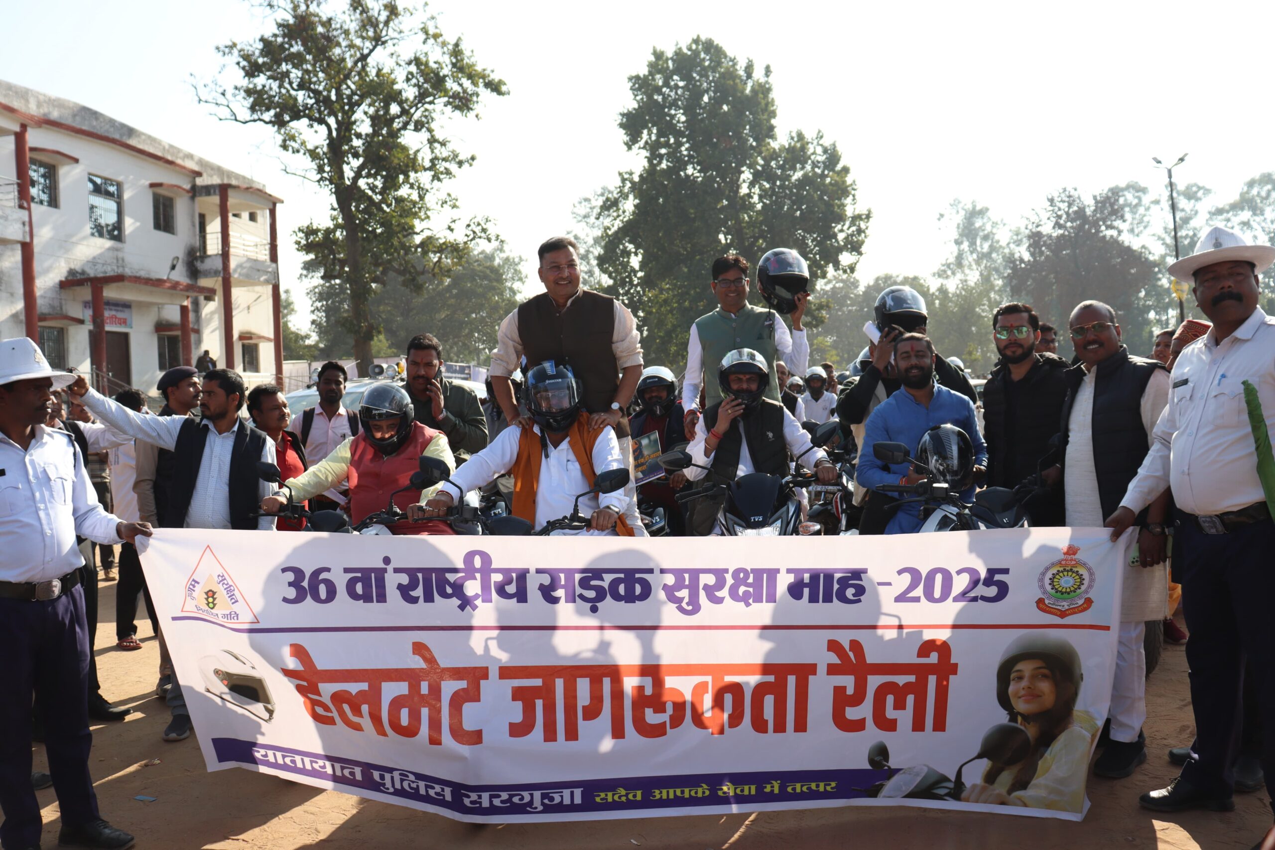 हेलमेट रैली के जरिए नागरिकों से यातायात नियमों के पालन और हेलमेट पहनने की अपील सरगुजा, 18 जनवरी 2025:36वें सड़क सुरक्षा सप्ताह के तहत सरगुजा पुलिस ने आज हेलमेट रैली का आयोजन किया। इस अवसर पर छत्तीसगढ़ सरकार के माननीय मंत्री श्री ओ.पी. चौधरी ने आम नागरिकों को सड़क सुरक्षा और यातायात नियमों के पालन का संदेश दिया। रैली में युवा आयोग के अध्यक्ष श्री विश्वविजय सिंह तोमर, अंबिकापुर विधायक श्री राजेश अग्रवाल, लुंड्रा विधायक श्री प्रबोध मिंज, कलेक्टर सरगुजा श्री विलास भोस्कर, और पुलिस अधीक्षक सरगुजा श्री योगेश पटेल ने भी भाग लिया। रैली का उद्देश्य:दुपहिया वाहन चलाते समय हेलमेट के उपयोग को प्रोत्साहित करना और नागरिकों को यातायात नियमों का पालन करने के लिए जागरूक करना। यह रैली पीजी कॉलेज ऑडिटोरियम भवन से शुरू होकर सर्किट हाउस से होते हुए यातायात कार्यालय में समाप्त हुई। विशेष उपस्थिति:कार्यक्रम के दौरान अतिरिक्त पुलिस अधीक्षक श्री अमोलक सिंह ढिल्लों, रक्षित निरीक्षक तृप्ति सिंह राजपूत, थाना प्रभारी मणीपुर उप निरीक्षक अखिलेश सिंह, महिला थाना प्रभारी सुनीता भारद्वाज, थाना प्रभारी धौरपुर उप निरीक्षक अश्वनी दीवान, यातायात शाखा के पुलिसकर्मी, पुलिस मितान, “फिट कॉप फिट सिटी” के सदस्य, और अन्य अधिकारी-कर्मचारी शामिल रहे। आगामी कार्यक्रम:सरगुजा पुलिस ने घोषणा की है कि सड़क सुरक्षा सप्ताह के अंतर्गत विभिन्न जागरूकता कार्यक्रमों का आयोजन किया जाएगा, जिससे नागरिकों में सड़क सुरक्षा और यातायात नियमों के प्रति सजगता बढ़ाई जा सके। Post Views: 2,543 Please Share With Your Friends Also Post navigation लखनपुर में स्वामित्व संपत्ति कार्ड का वितरण: 7 ग्रामों के 77 हितग्राहियों को मिला लाभ संगठित चोरी के दो गिरोहों का भांडाफोड़, आरोपियों को भेजा गया जेल