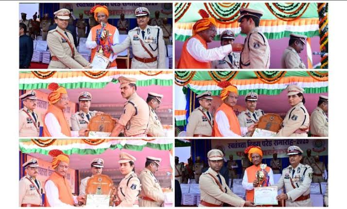79 th Independence Day 2025: मुख्यमंत्री विष्णुदेव साय ने 35 अधिकारियों और जवानों को पुलिस पदक प्रदान किए रायपुर। पुलिस परेड ग्राउंड में आयोजित स्वतंत्रता दिवस समारोह के मुख्य आयोजन में मुख्यमंत्री विष्णुदेव साय ने 35 पुलिस अधिकारियों और जवानों को उत्कृष्ट सेवा के लिए पुलिस पदकों से सम्मानित किया। साय ने पुलिस वीरता पदक से 11, राष्ट्रपति पुलिस पदक से 01, सराहनीय सेवा के लिए पुलिस पदक से 11, सुधार सेवा पदक से 05, गृहरक्षक एवं सराहनीय सेवा पदक 01 और राज्य स्तरीय एवं पुलिस महानिदेशक पदकों से 06 अधिकारी-कर्मचारियों को अलंकृत किया। राष्ट्रपति के पुलिस वीरता पदक 2025 लालजी सिन्हा, निरीक्षक, जिला-कबीरधाम, भुवनेश्वर साहू, निरीक्षक, जिला-रायपुर, संजय पोटाम, निरीक्षक, जिला-दंतेवाड़ा, कमलेश मरकाम, प्रधान आरक्षक, जिला-दंतेवाड़ा, अंजु कुमारी, उप पुलिस अधीक्षक, जिला-कबीरधाम, दिनेश भास्कर, प्रधान आरक्षक, जिला-दंतेवाड़ा, चैतराम गुरूपंच, निरीक्षक, जिला-सुकमा, हेमला नंदू, प्रधान आरक्षक, जिला-दंतेवाड़ा, प्यारस मिंज, सहायक उप निरीक्षक, जिला-दंतेवाड़ा, मनोज पुनेम, प्रधान आरक्षक, जिला-दंतेवाड़ा। जिला-दंतेवाड़ा के शहीद प्रधान आरक्षक बुधराम कोरसा के लिए उनकी पत्नी सुखमति ने पुलिस वीरता पदक प्राप्त किया। विशिष्ट सेवा हेतु राष्ट्रपति का पुलिस पदक 2025 महेश राम साहू, सेवानिवृत्त, निरीक्षक विशेष शाखा, पुलिस मुख्यालय नवा रायपुर। सराहनीय सेवा हेतु भारतीय पुलिस पदक 2025 राहुल भगत (भा.पु.से.), सचिव, माननीय मुख्यमंत्री, मुख्यमंत्री सचिवालय एवं सचिव, सुशासन एवं अभिसरण विभाग (छ.ग. शासन) सराहनीय सेवा हेतु भारतीय पुलिस पदक 2025 ज्ञानेन्द्र कुमार अवस्थी, सेवानिवृत्त सहायक पुलिस महानिरीक्षक सुरक्षा, पुलिस मुख्यालय, नवा रायपुर, अनिल कुमार कश्यप, उप पुलिस अधीक्षक विशेष शाखा, पुलिस मुख्यालय, नवा रायपुर, हरिशंकर प्रताप सिंह, निरीक्षक विशेष आसूचना शाखा, पुलिस मुख्यालय, नवा रायपुर, नरेश कुमार पैकरा, कंपनी कमांडर 7वी वाहिनी छसबल, भिलाई, वली मोहम्मद शेख, निरीक्षक योजना प्रबंध शाखा, पुलिस मुख्यालय, नवा रायपुर, समैया चिप्पनपल्ली, सहायक उप निरीक्षक, नक्सल सेल, जिला-बीजापुर, सुशील कुमार श्रीवास, प्रधान आरक्षक, विशेष आसूचना शाखा, पुलिस मुख्यालय, नवा रायपुर, तुलाराम चुरेन्द्र, प्रधान आरक्षक, थाना-रावघाट, जिला-कांकेर, हरिश्चन्द्र मरकाम, प्रधान आरक्षक, 8वीं वाहिनी छसबल, राजनांदगांव, सुशील कुमार चौबे, आरक्षक, अपराध अनुसंधान विभाग, पुलिस मुख्यालय, नवा रायपुर। सराहनीय सुधारात्मक सेवा पदक 2025 मधु सिंह, उप जेल अधीक्षक, केन्द्रीय जेल जगदलपुर, साहेबुद्दीन अंसारी, (सेवानिवृत्त) मुख्य प्रहरी, जिला जेल बेमेतरा, हरवंश लाल मकराम, प्रहरी, जिला जेल दंतेवाड़ा, ज्ञानप्रकाश प