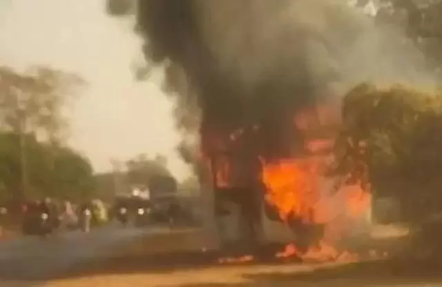 बलौदाबाजार। बलौदाबाजार से रायपुर जा रही एक सवारी बस में सोमवार सुबह अचानक भीषण आग लग गई। आग इतनी तेज थी कि कुछ ही मिनटों में बस पूरी तरह जलकर खाक हो गई। हालांकि बस चालक की सूझबूझ और त्वरित निर्णय से बस में सवार लगभग 50 यात्रियों की जान बच गई। घटना में किसी भी प्रकार की जनहानि नहीं हुई है। जानकारी के अनुसार राजधानी ट्रेवल्स की यह बस सुबह बलौदाबाजार से रायपुर के लिए रवाना हुई थी। बस जैसे ही भैंसा गांव के पास सुबह करीब 9 बजे पहुंची तभी इंजन से अचानक धुआं उठने लगा। आपात स्थिति को भांपते हुए चालक ने तत्काल बस को सड़क किनारे रोका और सभी दरवाजे खोलकर यात्रियों को सुरक्षित उतारा। घटना के बाद स्थानीय ग्रामीणों ने यात्रियों को प्राथमिक सहायता उपलब्ध कराई। आग लगने के कारणों का अभी स्पष्ट पता नहीं चल पाया है, हालांकि प्रारंभिक तौर पर इंजन में तकनीकी खराबी को वजह माना जा रहा है। सूचना पर पुलिस और अग्निशमन विभाग के अधिकारी मौके के लिए रवाना हुए। Post Views: 21 Please Share With Your Friends Also Post navigation ब्रेकिंग : अब इस से नाम से जाना जाएगा दामाखेड़ा, राजपत्र में अधिसूचना जारी…