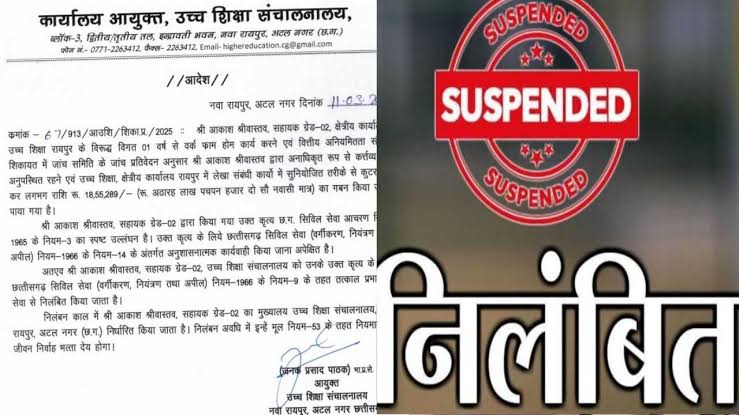 CG: शिक्षा विभाग में कथित 2 अरब 18 करोड़ रुपये का भ्रष्टाचार, दो बाबू निलंबित, अधिकारियों पर भी हो सकती है कार्रवाई कवर्धा:- जिले के शिक्षा विभाग में सामने आए कथित दो अरब 18 करोड़ रुपये की वित्तीय अनियमितता के मामले ने प्रशासनिक महकमे में हड़कंप मचा दिया है. मामले की गंभीरता को देखते हुए प्रारंभिक कार्रवाई करते हुए विभाग ने दो कर्मचारियों को निलंबित कर दिया है, जबकि जांच के दायरे में अन्य कर्मचारियों और अधिकारियों के आने के भी संकेत मिल रहे हैं. शिक्षा विभाग के वर्ग 2 के कर्मचारी निलंबित विभागीय आदेश के अनुसार, तत्कालीन कार्यालय में पदस्थ वर्ग–2 कर्मचारी माया कसार और योगेंद्र कश्यप को निलंबन आदेश जारी किया गया है. दोनों कर्मचारियों पर शिक्षा विभाग से जुड़े वित्तीय लेन–देन, भुगतान प्रक्रिया और लेखा अभिलेखों में अनियमितता से संबंधित भूमिका होने का संदेह है. निलंबन की कार्रवाई जांच प्रभावित न हो, इस उद्देश्य से की गई कार्रवाई बताया जा रहा है. बताया जा रहा है कि यह प्रकरण शिक्षा विभाग में विभिन्न मदों में किए गए भुगतान और उनके समुचित लेखा-जोखा से जुड़ा हुआ है. प्रारंभिक जांच में दस्तावेजों के मिलान के दौरान बड़ी राशि के उपयोग को लेकर गंभीर सवाल सामने आए हैं. इसी के आधार पर विभागीय स्तर पर विस्तृत जांच के आदेश दिए गए हैं. वरिष्ठ अधिकारियों पर भी हो सकती है कार्रवाई सूत्रों का कहना है कि यह कार्रवाई केवल शुरुआत है और जांच आगे बढ़ने पर अन्य कर्मचारियों के साथ-साथ कुछ जिम्मेदार अधिकारियों की भूमिका भी जांच के घेरे में आ सकती है. हालांकि अब तक किसी वरिष्ठ अधिकारी के खिलाफ औपचारिक आदेश जारी नहीं हुआ है, लेकिन उच्च अधिकारियों को कारवाई के लिए पत्र लिखा गया है इससे विभागीय हलकों में हलचल तेज है. Post Views: 21 Please Share With Your Friends Also Post navigation CG: गांजा तस्करी करते हुए मशहूर यूट्यूबर गिरफ्तार, पुलिस ने अब तक जब्त किया 10.50 करोड़ का मादक पदार्थ