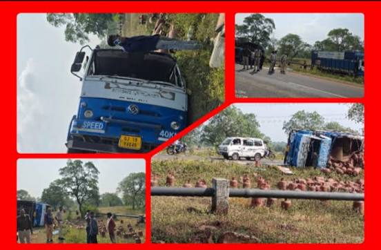 CG: बड़ा हादसा…सिलेंडर से भरा ट्रक पलटा, मचा हड़कंप
