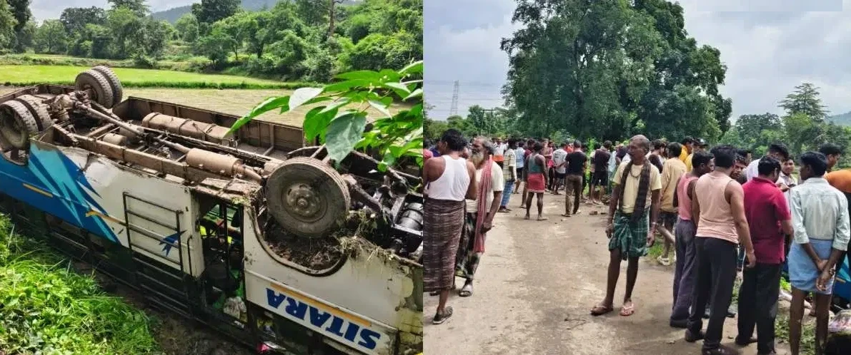 CG Accident : अनियंत्रित बस खेत में पलटी, एक दर्जन से अधिक घायल, 4 की हालत नाजुक रायगढ़ : जिले के लैलूंगा थाना क्षेत्र में शनिवार को एक दर्दनाक बस हादसा हो गया। इस हादसे में एक दर्जन से अधिक यात्री घायल हो गए, जिनमें से चार की हालत गंभीर बताई जा रही है। हादसा उस समय हुआ जब तोलमा से रायगढ़ की ओर जा रही एक यात्री बस मिलुपारा और कोडकेल गांव के बीच अचानक अनियंत्रित होकर सड़क से फिसल गई और पास के खेत में पलट गई। प्रत्यक्षदर्शियों के अनुसार, बस में सवार कई यात्री हादसे के दौरान अंदर फंस गए थे। स्थानीय ग्रामीणों ने तत्परता दिखाते हुए यात्रियों को बस से बाहर निकाला और तुरंत पुलिस को सूचना दी। मौके पर पहुंची लैलूंगा पुलिस ने राहत और बचाव कार्य शुरू किया। घायलों को निजी उद्योगों के वाहनों की मदद से तमनार सामुदायिक स्वास्थ्य केंद्र ले जाया गया, जहां 9 लोगों को भर्ती किया गया है। स्वास्थ्य केंद्र से मिली जानकारी के अनुसार, 12 से अधिक लोग घायल हुए हैं, जिनमें से चार यात्रियों की हालत गंभीर है। घायलों का इलाज जारी है, और गंभीर रूप से घायल मरीजों को बेहतर उपचार के लिए रायगढ़ के अन्य अस्पतालों में रेफर करने की तैयारी की जा रही है। लैलूंगा पुलिस ने हादसे के कारणों की जांच शुरू कर दी है। प्रारंभिक अनुमान के अनुसार, बस के अनियंत्रित होने का कारण चालक की लापरवाही या सड़क की खराब स्थिति हो सकती है। पुलिस ने बस चालक और अन्य संबंधित लोगों से पूछताछ शुरू की है। Post Views: 163 Please Share With Your Friends Also Post navigation CG Crime : पारिवारिक विवाद ने ली जान, छोटे भाई ने बड़े भाई पर बसुले से वार कर की हत्या, आरोपी गिरफ्तार …. CG News : 70 हाथियों का दल सड़क पर, कैमरे में कैद हुआ रोमांचक नजारा, देखें वीडियो…
