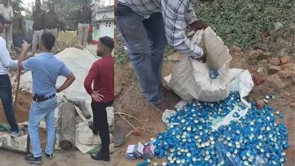 CG: बड़ी कार्यवाही..नकली शराब फैक्ट्री का खुलासा, पांच आरोपी गिरफ्तार कवर्धा:- छत्तीसगढ़ की कवर्धा पुलिस को नकली शराब बनाने वालों के खिलाफ बड़ी सफलता हासिल हुई है. पुलिस ने नकली शराब फैक्ट्री का भंडाफोड़ किया है. पोड़ी क्षेत्र में नकली शराब फैक्ट्री को सील कर पुलिस ने कुल पांच आरोपियों को गिरफ्तार किया है. मुखबिर की सूचना पर कार्रवाई कवर्धा पुलिस को लंबे अरसे से नकली शराब की शिकायत प्राप्त हो रही थी. इस बाबात पुलिस को सूचना मिली की पोड़ी क्षेत्र में नकली शराब फैक्ट्री संचालित है. इस सूचना पर एसपी धर्मेंद्र सिंह ने एक टीम का गठन किया. इस टीम ने छापेमारी की और नकली शराब की फैक्ट्री का खुलासा हो गया. गुड़ बनाने के आड़ में शराब फैक्ट्री छापेमारी के दौरान सामने आया कि गुड़ बनाने की एक फैक्ट्री की आड़ में बड़े पैमाने पर नकली शराब का उत्पादन किया जा रहा था. पुलिस को मौके से भारी मात्रा में अवैध सामान मिला, जिसमें सैकड़ों खाली बोतलें, ढक्कन, शराब कंपनियों के नकली लेबल स्टिकर, जर्किन, केन और रसायन है. इसके साथ ही पुलिस को मिक्सिंग टैंक और पैकिंग मशीन भी मिली है. पुलिस को अंदेशा है कि इसमें बड़ा शराब नेटवर्क शामिल हो सकता है. बरामद सामान की मात्रा और उपकरणों से साफ है कि यह नेटवर्क लंबे समय से सक्रिय था और बड़े पैमाने पर कच्ची सामग्री की सप्लाई और शराब की बिक्री हो रही थी. Post Views: 51 Please Share With Your Friends Also Post navigation CG: ममता को किया शर्मसार…दांतों के साथ पैदा हुआ बच्चा, अपशगुन मानकर मां ने 5 दिन के बच्चे की कर दी हत्या रायपुर में विकास कार्यों के पोस्टर पर कालिख पोतने से मचा राजनीतिक बवाल