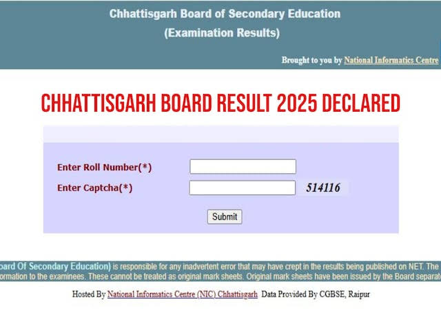 CGBSE CG Board Result 2025 Date OUT Live : छत्तीसगढ़ बोर्ड हाई स्कूल 10th Result और हायर सेकेण्डरी (CGBSE) छत्तीसगढ़ बोर्ड कक्षा 10वीं परिणाम 2025 की परिणाम जारी जो चुका है। यह परिणाम राज्य शिक्षा केंद्र में प्रेस कॉन्फ्रेंस के जरिए जारी किया गया और इस प्रेस कॉन्फ्रेंस की अध्यक्षता छत्तीसगढ़ के मुख्यमंत्री विष्णुदेव साय करेंगे और सीएम ही कक्षा 10वीं के परिणाम जारी करेंगे। 10वीं-12वीं बोर्ड के परीक्षा परिणाम जारी कर दिए गए है, सफल स्टूडेंट्स को CM साय ने बधाई दी। मोबाइल पर SMS से छत्तीसगढ़ 10वीं का रिजल्ट चेक करने के लिए मैसेज टाइप करें- CG10 Roll Number इसे 56263 पर भेज दें। अंग्रेजी में सीजी10 लिखने के बाद एक स्पेस देना है और फिर सीजी बोर्ड 10वीं का रोल नंबर लिखना है। 5 सालों में 10वीं के रिजल्ट में बढ़ोतरी छत्तीसगढ़ बोर्ड 10वीं का रिजल्ट पिछले 6 सालों में 7.41 फीसदी तक बढ़ा है। साल 2020 और इसके बाद के सालों में दसवीं के नतीजे 70 प्रतिशत से ज्यादा रहे हैं। Chhattisgarh Board Result 2025 Marksheet: कहां मिलेगी ? छत्तीसगढ़ माध्यमिक शिक्षा मंडल (CGBSE) द्वारा CG Board Result 2025 10th 12th की आधिकारिक तौर पर घोषणा रिजल्ट ऑनलाइन निकाल लेवे । cgbse.nic.in के जरिए ही आप अपने बोर्ड रिजल्ट की मार्कशीट भी प्राप्त कर होगी। Post Views: 492 Please Share With Your Friends Also Post navigation ‘ऑपरेशन SINDOOR’ : भारतीय सेना के ऑपरेशन पर CM विष्णुदेव साय का पोस्ट- हर-हर महादेव, विजय और अरुण बोले- ये नया भारत है, घर में घुसकर मारता है पुलिस विभाग में बड़े पैमाने पर फेरबदल: ASI, हेड कांस्टेबल समेत कई आरक्षकों का हुआ ट्रांसफर, देखें लिस्ट-