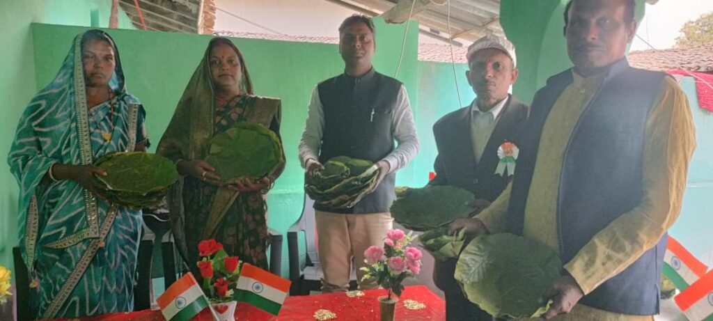 गणतंत्र दिवस पर मनाया गया दोना–पत्तल उत्सव,वन संरक्षण व जंगल प्राप्त हरे पत्तों के सार्थक उपयोग की अनूठी पहल उदयपुर (सरगुजा) ग्रामीण युवा जन कल्याण समिति उदयपुर सरगुजा के द्वारा 26 जनवरी 2026 को गणतंत्र दिवस के अवसर पर उदयपुर विकासखंड के ग्राम पंचायत-पलका में “दोना–पत्तल उत्सव” का आयोजन किया गया। कार्यक्रम का उद्देश्य मानव स्वास्थ्य,प्लास्टिक से मुक्ति, पर्यावरण संरक्षण एवं वनों की रक्षा के प्रति जनजागरूकता फैलाना रहा। समिति ने ग्रामीण महिलाओं के नेतृत्व में जंगलों से प्राप्त साल/सरई पत्तों से बने हस्तनिर्मित दोना–पत्तल को पुनः घर-घर भोजन पात्र के रूप में पहुँचाने तथा इसके महत्व को आमजन तक प्रसारित करने की विशेष पहल की। विकासखंड उदयपुर के ग्राम पंचायत पलका में समिति अध्यक्ष तपेसिया सिरदार के निवास स्थल पर स्वयं सहायता समूह की महिलाओं को दोना–पत्तल निर्माण का प्रशिक्षण दिया गया,जिससे उन्हें स्वरोजगार से जोड़ने का प्रयास किया गया। साथ ही विवाह, सामाजिक एवं धार्मिक आयोजनों में हरे पत्तों से बने दोना–पत्तल के उपयोग का सामूहिक संकल्प लिया गया। अध्यक्ष सिरदार ने साल पत्तों में भोजन करने के लाभ बताते हुए कहा कि प्राचीन काल में मिट्टी के बर्तन एवं प्राकृतिक पात्रों के उपयोग से लोग निरोग जीवन जीते थे। आधुनिक समय में कृत्रिम बर्तनों के बढ़ते प्रयोग से स्वास्थ्य पर विपरीत प्रभाव पड़ रहा है। उन्होंने अपील की कि हम पुनः प्रकृति से जुड़ें और अपने दैनिक जीवन में दोना–पत्तल का अधिकाधिक उपयोग करें।कार्यक्रम का शुभारंभ पौधों को प्रकृति ईश्वर मानते हुए पूजा-अर्चना से किया गया। इसके पश्चात सभी उपस्थितजनों ने साल पत्तों से बने दोना–पत्तल के उपयोग की शपथ ली एवं प्लास्टिक मुक्त गाँव बनाने की दिशा लक्ष्य बनाकर काम करने का संकल्प लिया गया। समिति सचिव कन्हाई राम बंजारा ने प्रतिभागियों का परिचय कराते हुए भविष्य की कार्ययोजना पर प्रकाश डाला तथा अधिक से अधिक लोगों को हरे पत्तों से बने दोना–पत्तल अपनाने हेतु प्रेरित किया एवं समिति द्वारा स्थानीय ग्रामीण युवाओं महिलाओं को स्वरोजगार स्थापित करने एवं वन आधारित वन उत्पाद से ग्रामीण आजीविका को मजबूत करने का कार्य किया जा रहा है इस ओर ज्यादा से ज्यादा लोगों को लाभ पहुँचाने के लिए प्रयासरत हैं। इस अवसर पर अमरनाथ सिरदार ने प्राकृतिक संसाधनों के उपयोग से होने वाले स्वास्थ्य एवं रोजगार संबंधी लाभों पर जानकारी दी। वहीं समिति के कोषाध्यक्ष भरत लाल गुप्ता ने मानव जीवन में प्रकृति से दूरी के दुष्परिणामों पर चिंता व्यक्त करते हुए वैज्ञानिक दृष्टिकोण से भोजन पात्रों के प्रभाव पर विचार साझा किए। कार्यक्रम की समाप्ति पर सभी सदस्यों ने स