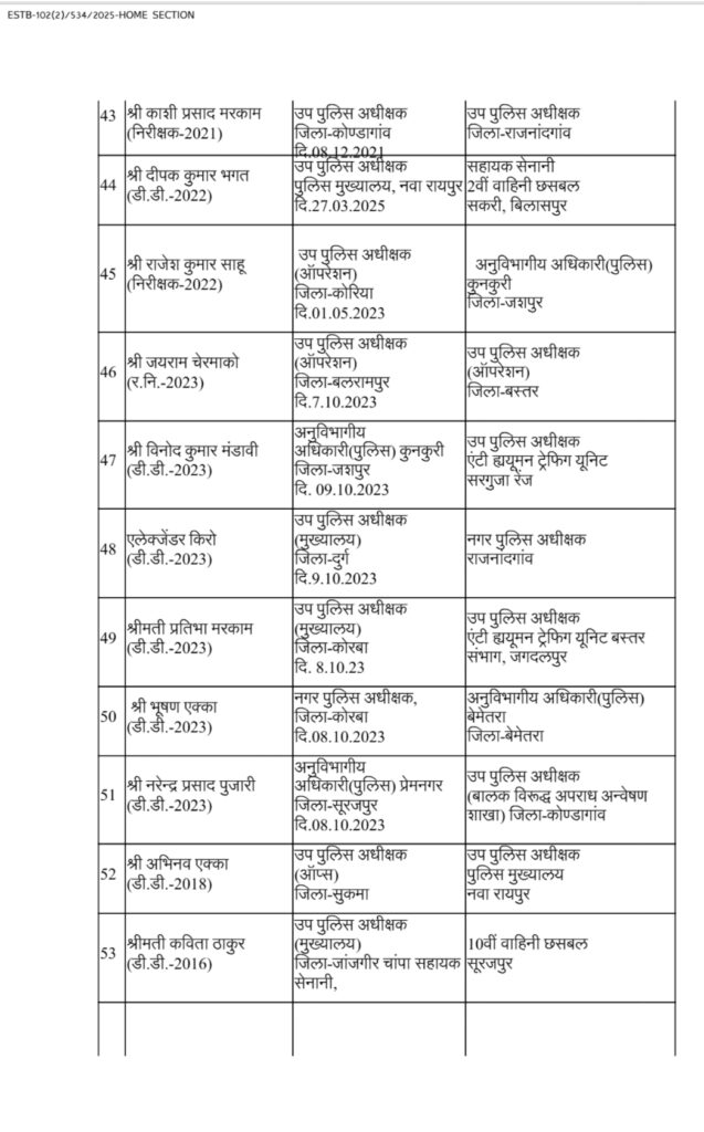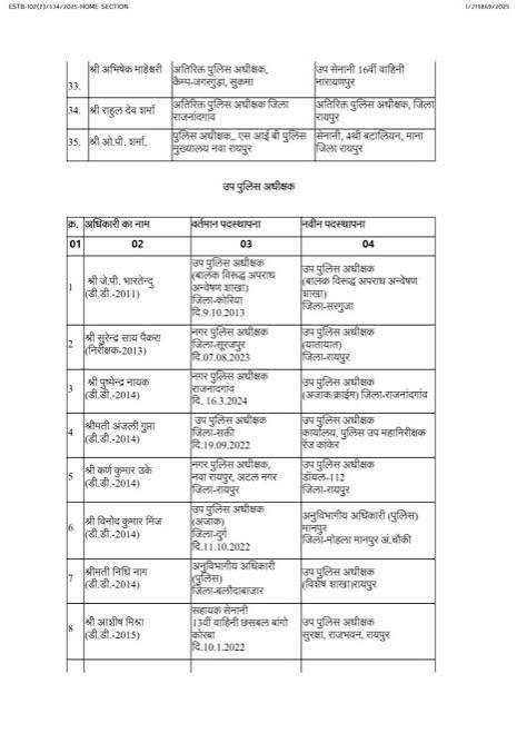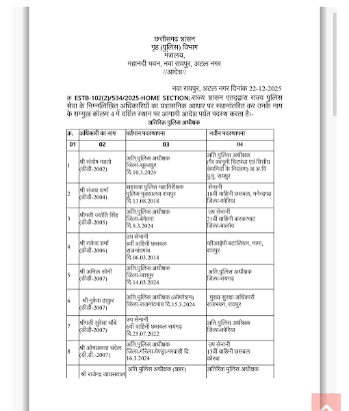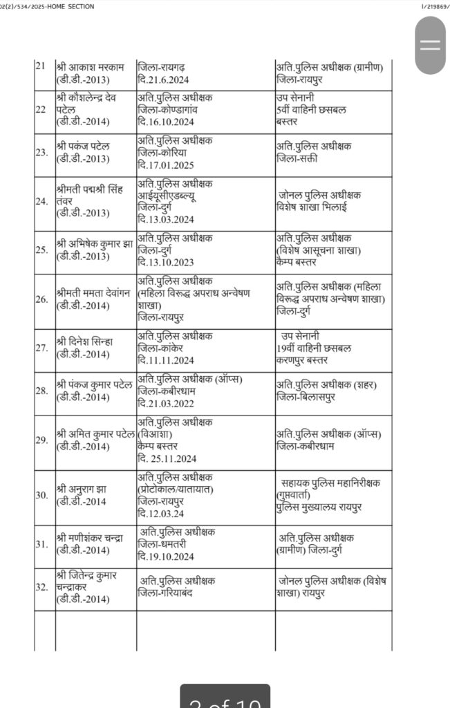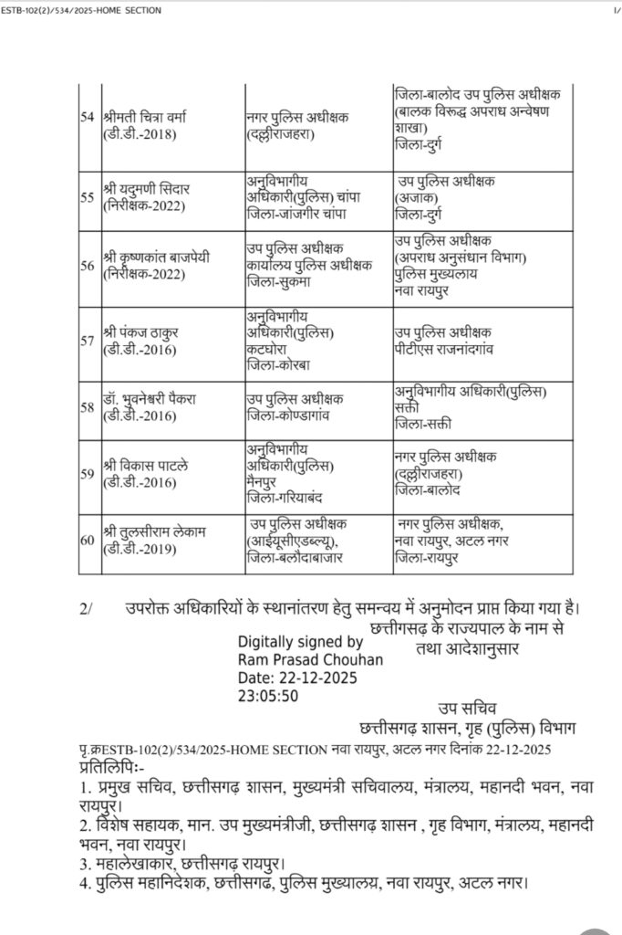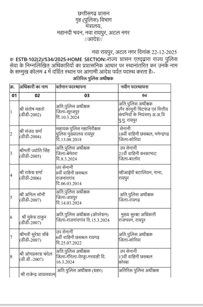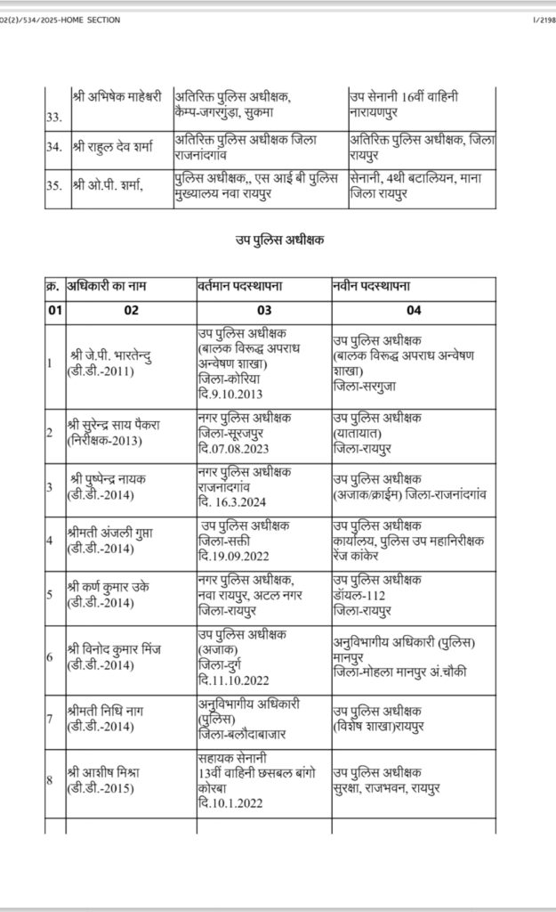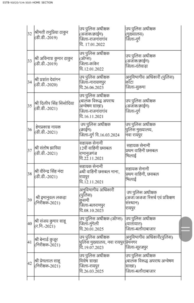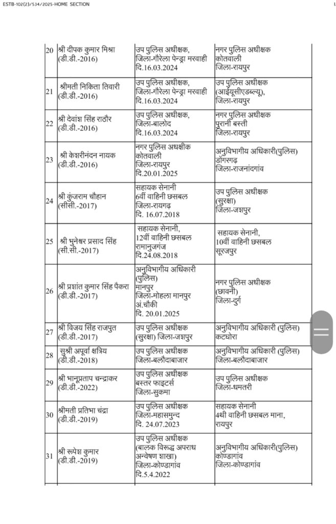 CG: पुलिस महकमें में बड़ी सर्जरी, 95 ASP और DSP का तबादला