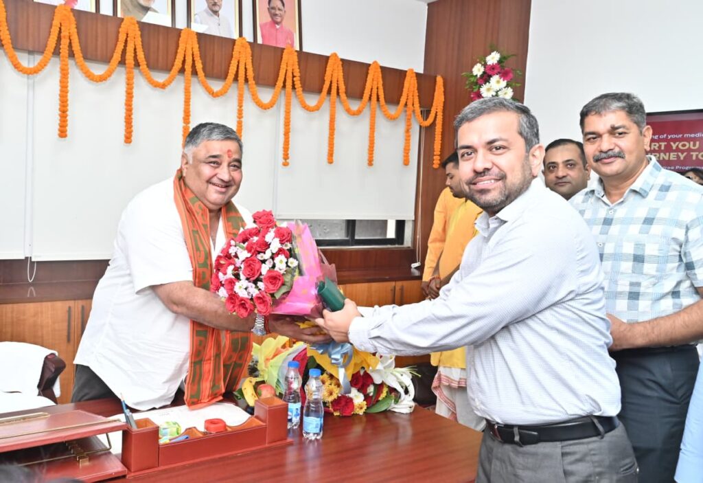 मंत्री राजेश अग्रवाल ने पदभार ग्रहण कर पूजा-अर्चना के साथ संभाली जिम्मेदारी अंबिकापुर। छत्तीसगढ़ शासन में पर्यटन, संस्कृति, धार्मिक न्यास एवं धर्मस्व विभाग की जिम्मेदारी संभालने वाले कैबिनेट मंत्री माननीय राजेश अग्रवाल ने आज अपने विभागों का पदभार विधिविधान पूर्वक ग्रहण किया। पदभार ग्रहण करने से पूर्व उन्होंने पारंपरिक रीति-रिवाज के अनुसार विधि-विधान से पूजा-अर्चना कर भगवान का आशीर्वाद प्राप्त किया। मंत्रोच्चार एवं हवन-पूजन के बीच उन्होंने यह संकल्प व्यक्त किया कि वे अपने कार्यकाल में प्रदेश की सांस्कृतिक धरोहर, धार्मिक आस्था और पर्यटन विकास को नई ऊँचाइयों तक ले जाने के लिए पूरी निष्ठा और समर्पण भाव से कार्य करेंगे। इस अवसर पर उपस्थित अधिकारियों, कार्यकर्ताओं एवं समर्थकों ने उन्हें पुष्पगुच्छ भेंट कर हार्दिक बधाई एवं शुभकामनाएँ दीं। मंत्री अग्रवाल ने सबका आभार व्यक्त करते हुए कहा कि छत्तीसगढ़ की सांस्कृतिक विरासत और धार्मिक परंपराएँ प्रदेश की आत्मा हैं। इन्हें संवारना, सुरक्षित रखना और देश-दुनिया तक पहुँचाना ही उनका प्रमुख लक्ष्य होगा। उन्होंने यह भी कहा कि पर्यटन स्थलों के विकास से न केवल प्रदेश की पहचान सुदृढ़ होगी, बल्कि रोजगार और आजीविका के नए अवसर भी सृजित होंगे। सरगुजा संभाग के सभी संस्कृति एवं पुरातत्पत्व स्थलों को विकसित करने के लिए विशेष योजना बनाकर विकसित किया जाएगा। पूजा-पाठ और पदभार ग्रहण का यह कार्यक्रम श्रद्धा और उत्साह के साथ सम्पन्न हुआ, जिसमें विभागीय अधिकारी, स्थानीय जनप्रतिनिधि, कार्यकर्ता एवं बड़ी संख्या में श्रद्धालुजन उपस्थित रहे। Post Views: 116 Please Share With Your Friends Also Post navigation CG : नाबालिग के साथ हैवानियत, सरपंच के भतीजे समेत 4 युवकों ने किया गैंगरेप, शराब के नशे में आरोपियों ने नाबालिग लड़की के दोस्त को भी पीटा पति की बात बनी जानलेवा! नई नवेली दुल्हन ने उठाया खौफनाक कदम…