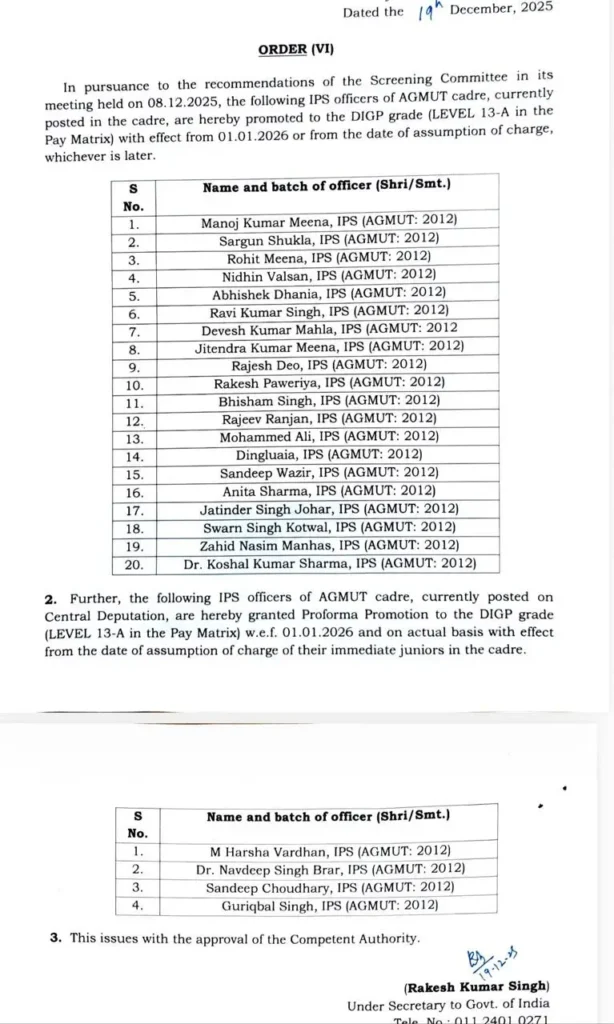 नई दिल्ली :- नया साल लगने में अभी 10 दिन बाकी है। हालांकि साल बदलने से पहले ही करीब 20 आईपीएस अफसरों का रैंक बदल गया है। सभी अफसरों को पदोन्नति दे दी गई है। इस संबंध में गृह मंत्रालय की तरफ से आधिकारिक सूची भी जारी कर दी गई है।