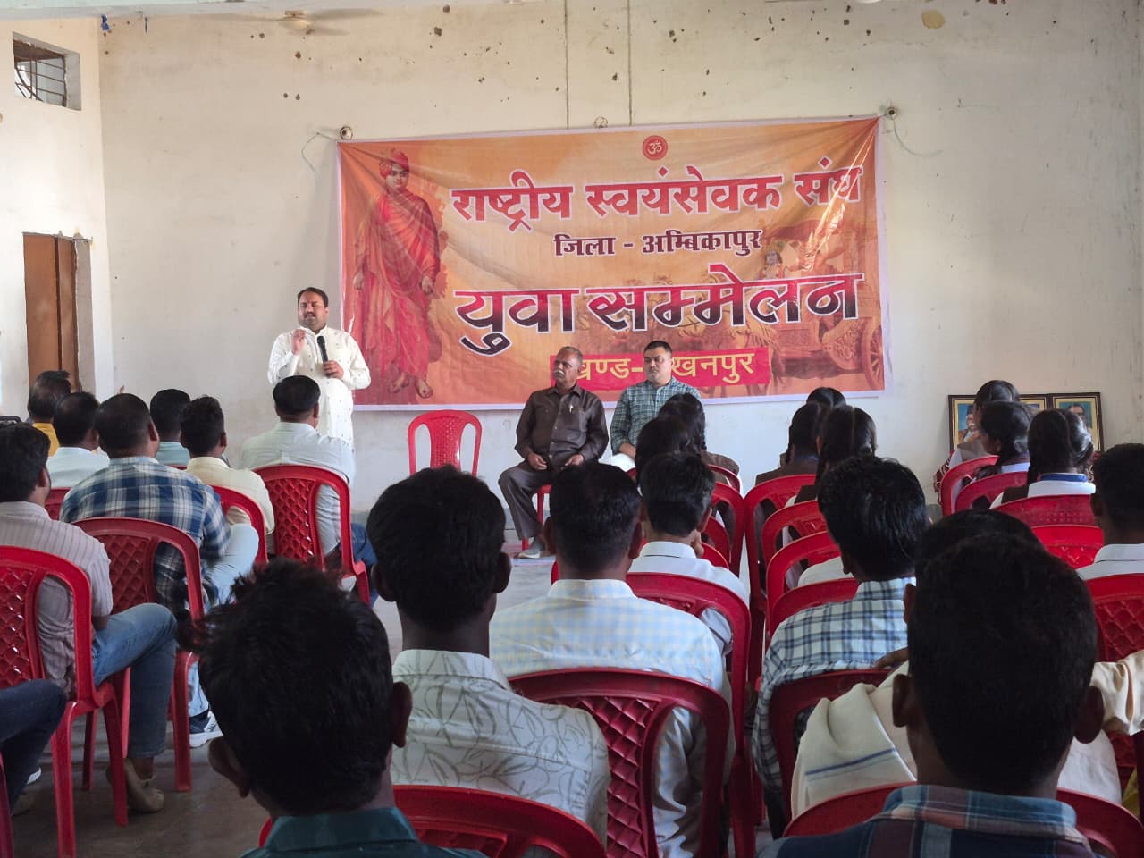 लखनपुर। विकासखंड लखनपुर के सामुदायिक भवन में आज राष्ट्रीय स्वयंसेवक संघ द्वारा युवा सम्मेलन का आयोजन किया गया। कार्यक्रम में बड़ी संख्या में क्षेत्र के युवाओं एवं स्वयंसेवकों की उपस्थिति रही। सम्मेलन में विभाग संपर्क प्रमुख कृष्ण त्रिपाठी मुख्य रूप से उपस्थित रहे तथा उन्होंने युवाओं को संबोधित किया। अपने उद्बोधन में त्रिपाठी ने युवाओं को राष्ट्रीय स्वयंसेवक संघ के कार्य, उद्देश्य और संगठन की भूमिका से अवगत कराया। उन्होंने कहा कि आज के समय में युवाओं की राष्ट्र निर्माण में महत्वपूर्ण भूमिका है। सभी युवाओं को संघ की शाखाओं से जुड़कर राष्ट्र, समाज और संस्कृति की सेवा के लिए आगे आना चाहिए। उन्होंने युवाओं से आह्वान करते हुए कहा कि संघ की शाखा में आकर संगठन को नजदीक से देखें और देशप्रेम, धर्म तथा संस्कृति की रक्षा के लिए अपना जीवन समर्पित करें। उन्होंने कहा कि वर्तमान समय की आवश्यकता है कि हम सब मिलकर एक राष्ट्र, श्रेष्ठ राष्ट्र के संकल्प को साकार करें और समाज में राष्ट्रीय चेतना को मजबूत बनाएं। कार्यक्रम में खंड संघचालक सत्यानारायण तिवारी, सहसंघचालक डॉ. रवि भूषण पाण्डेय, खंड कार्यवाह यतेंद्र पाण्डेय, संपर्क प्रमुख प्रदीप गुप्ता, व्यवस्था प्रमुख हरि साहू, सुरेश गुप्ता, प्रदीप रजवाड़े, मदन सिंह, विनय प्रजापति सहित बड़ी संख्या में संघ के स्वयंसेवक एवं क्षेत्र के युवा उपस्थित रहे। सम्मेलन के दौरान युवाओं में संगठन के प्रति उत्साह देखने को मिला तथा राष्ट्र सेवा के लिए संघ की गतिविधियों में सक्रिय रूप से भाग लेने का संकल्प लिया गया। Post Views: 6 Please Share With Your Friends Also Post navigation पण्डो आदिवासी भूमि विवाद को लेकर नवापारा चौक में पूर्व उपमुख्यमंत्री टी.एस. सिंहदेव का पुतला दहन