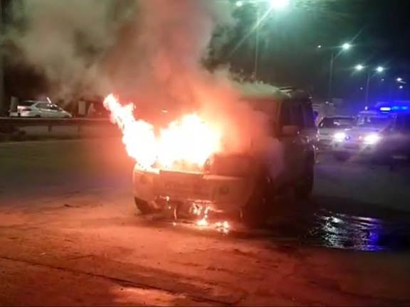 CG: नेशनल हाइवे पर चलती हाईवा में लगी आग, मची अफरा तफरी
