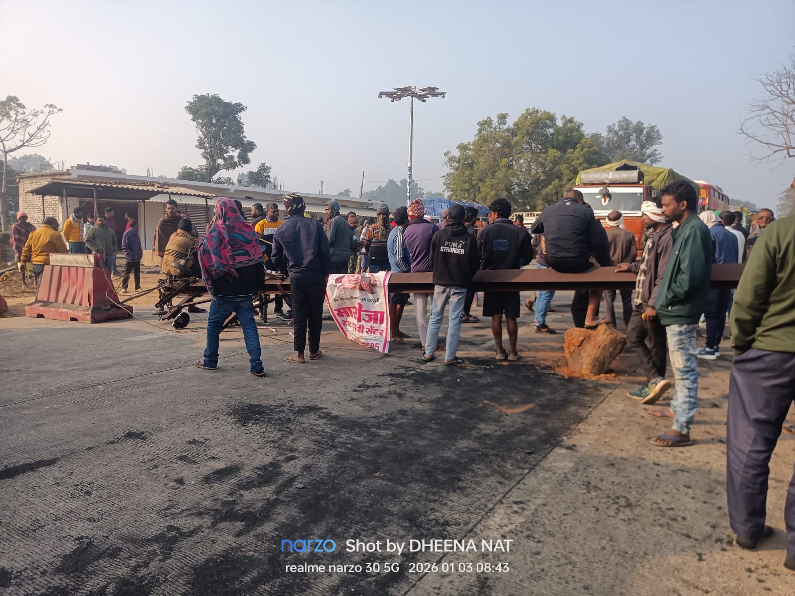 कोयला लोड हाईवा ने 11 के व्ही हाई टेंशन पोल को मारी टक्कर ग्राम शिवनगर में नेशनल हाईवे 130 हुआ ...