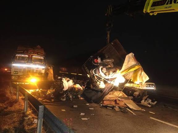 हाईवे पर हादसा, खड़े वाहनों को ट्रेलर ने मारी टक्कर, हादसे में 4 लोगों की मौत
