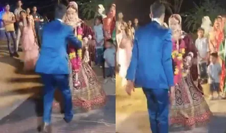 Viral Video : शादी की खुशी में बेकाबू हुआ दूल्हा, सबके सामने दुल्हन के साथ करने लगा ऐसी हरकत, देखकर मेहमानों के उड़े होश Viral Video : सोशल मीडिया पर कई तरह के वीडियो वायरल होते रहते हैं जिसमें लोग अजीबो गरीब हरकतें नजर आते हैं। ऐसा ही एक वीडियो सोशल मीडिया में तेजी से वायरल हो रहा है। जिसमें एक दूल्हा अपनी शादी में कूद- कूदकर डांस करता नजर आ रहा है। इस वीडियो में दूल्हा मस्त अंदाज में डांस करता नजर आ रहा है, जिसे देखकर दुल्हन मुस्कुरा रही है। बता दें कि, सोशल मीडिया पर एक शादी का वीडियो जमकर वायरल हो रहा है। वीडियो में देखा जा सकता है कि दूल्हा शादी की खुशी में जोश में झूम-झूमकर डांस कर रहा है, और सबकी नजरें उसी पर टिकी हैं। दूल्हे का उछलता-कूदता डांस देख दुल्हन भी पहले मुस्कुराती है, लेकिन जब दूल्हा उसे डांस के लिए खींचने की कोशिश करता है, तो वो झटक कर इंकार कर देती है। वहीं इस वीडियो को देखने के बाद यूजर्स इस वीडियो पर जमकर कमेंट कर रहे हैं किसी ने इसे “शादी की रील लाइफ कॉमेडी” बताया, तो किसी ने कहा, “दूल्हा ज़्यादा ही एक्साइटेड है!” इस वीडियो को देखने के बाद लोगों की हंसी नहीं रुक रही है। ➡️शादी की खुशियों के बीच एक दूल्हे का उछलता-कूदता डांस सोशल मीडिया पर खूब वायरल हो रहा है।➡️वीडियो में दूल्हा स्टेज पर अपनी खुशी ज़ाहिर करता दिख रहा है, लेकिन जब वह दुल्हन को भी डांस के लिए खींचता है, तो दुल्हन मुस्कुराते हुए मना कर देती है।यूज़र्स इस पर जमकर मजेदार कमेंट कर… pic.twitter.com/y5L3VWfqPk— IBC24 News (@IBC24News) May 21, 2025 Post Views: 349 Please Share With Your Friends Also Post navigation Viral Video : रात में बीच सड़क युवक और युवती के बीच विवाद, प्रेमी के कपड़े उतरवा कर की पिटाई, वीडियो वायरल पीएम मोदी का ही नाम भूल गए बिहार के मुखिया, मंच पर कह डाली ये बात, अब वायरल हुआ वीडियो, देखें आप भी पूरा वीडियो ….